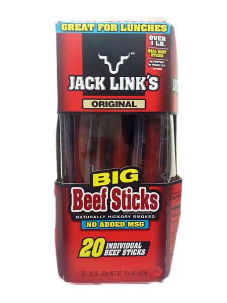 JACK LINK'S - Original Big Beef Sticks Naturally Hickory Smoked (No Added Msg) (20 Individual Beef Sticks)
